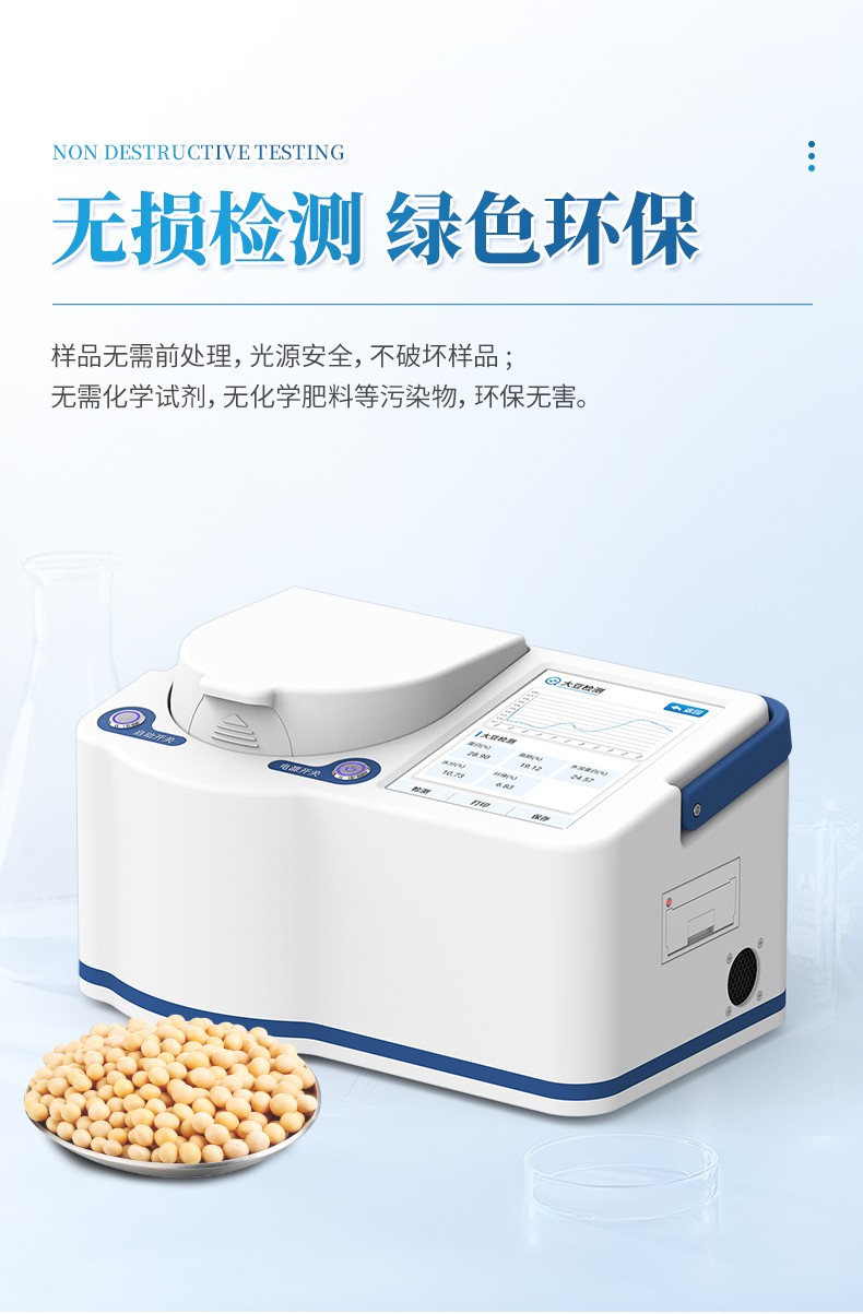 便攜式近紅外大豆蛋白儀采用良好的近紅外光譜技術(shù),可同時(shí)無損檢測(cè)大豆中的蛋白質(zhì)、脂肪、水溶性蛋白、纖維和水分等指標(biāo)。分析過程無需復(fù)雜前處理,數(shù)十秒內(nèi)即可得出結(jié)果,極大提升了檢測(cè)效率,降低了時(shí)間和人力成本。該儀器操作智能簡(jiǎn)便,結(jié)果穩(wěn)定可靠,是糧油加工、食品檢測(cè)、育種研發(fā)和貿(mào)易收購等領(lǐng)域進(jìn)行原料驗(yàn)收、過程控制與品質(zhì)評(píng)定的理想工具。